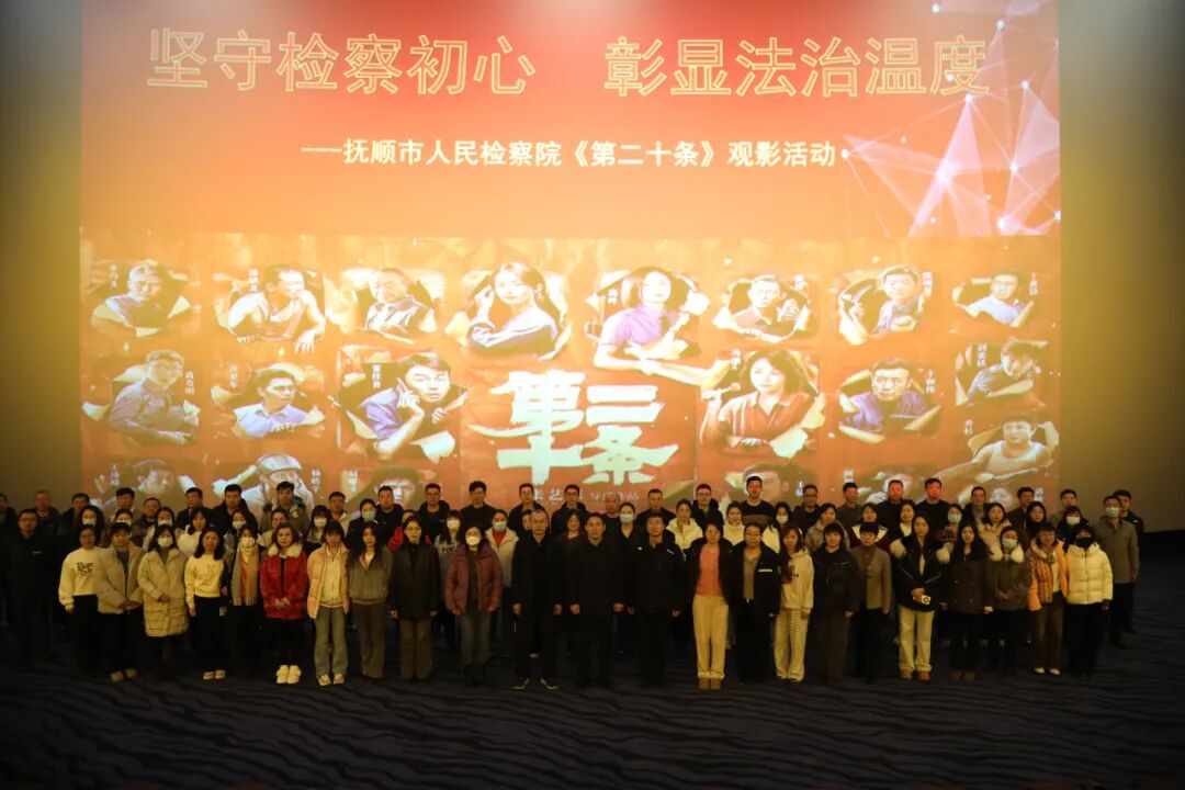 为深入践行习近平法治思想,持续巩固拓展主题教育成果,强化检察干警捍卫法律尊严、维护公平正义的坚定信念,让抚顺检察履职更显法治温度,2月27日,抚顺市人民检察院以“坚守检察初心 彰显法治温度”为主题,组织市院及派出院干警集体观看法治题材电影《第二十条》。